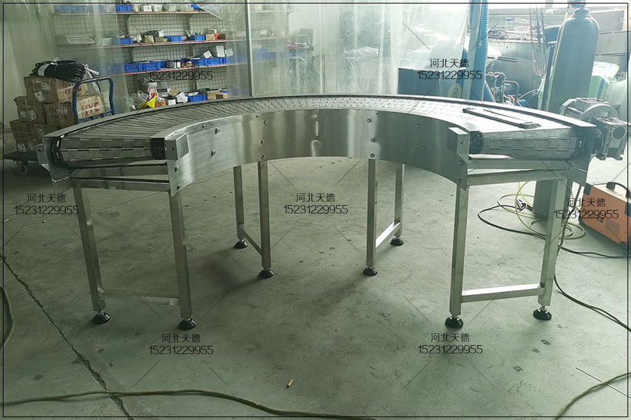 2. 鏈板轉彎機:采用金屬鏈板作為載體,結構簡單,承載力好,耐高溫,適合輸送重貨。