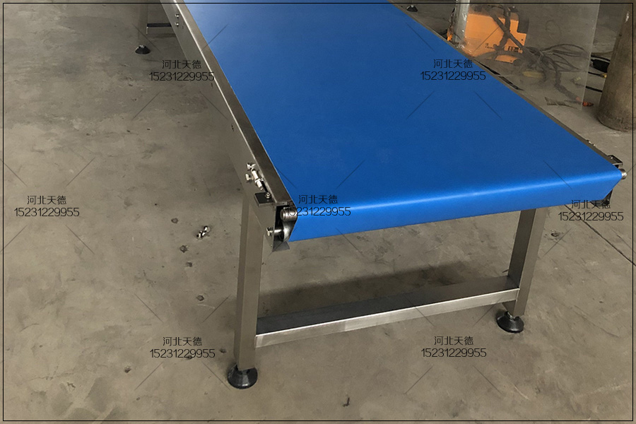頭部安裝驅(qū)動滾筒,尾部要安裝被動滾筒。驅(qū)動滾筒與被動滾筒的軸中 央線應與輸送機機架的中 央線垂直,安裝時把頭部滾筒與尾部滾筒的軸 承座固定孔相對應的機架上固定孑L做成長型跑道孔,安裝完成后調(diào)整。皮帶兩側(cè)的松緊度不一致,導致輸送機輸送帶向緊的一側(cè)移動跑偏。這時候 可以通過調(diào)整頭尾部滾筒的軸承座的前后位置來處理。 輸送帶的接口 ,輸送帶的接口要平直。輸送帶的接口方法有膠粘法與釘皮帶扣法。要保證皮帶食品輸送機輸送帶接口兩端要整齊,切口線和皮帶中 央線要垂直 。