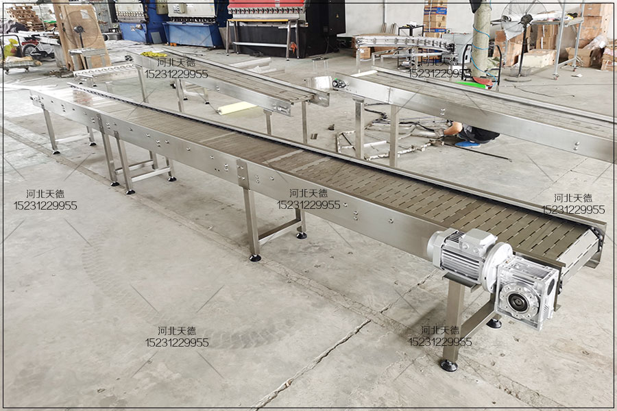 鏈板輸送機歡迎來電定制河北天德雞胸肉油炸流水線鏈板輸送機:15231229955 網址:http://www.jmbxg.cn/
