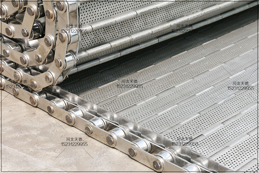 2、青豆清洗烘干輸送機不銹鋼鏈板輸送帶的緊不緊應適合,過緊提升 功率耗費,承軸易損壞;松馳傳動鏈條易搖晃和滑鏈。傳動鏈條的緊松水平為:從不銹鋼鏈板談及或往下壓,兩傳 動鏈條管理辦距的約為百分之二-百分之三。