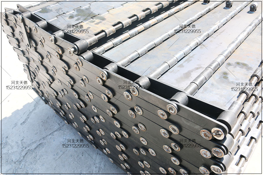 這個是張家口的客戶定制的,用來傳送金屬廢料使用,安裝在大型的重型設(shè)備中,需要加厚板加工,承載為載重鏈板輸送帶。