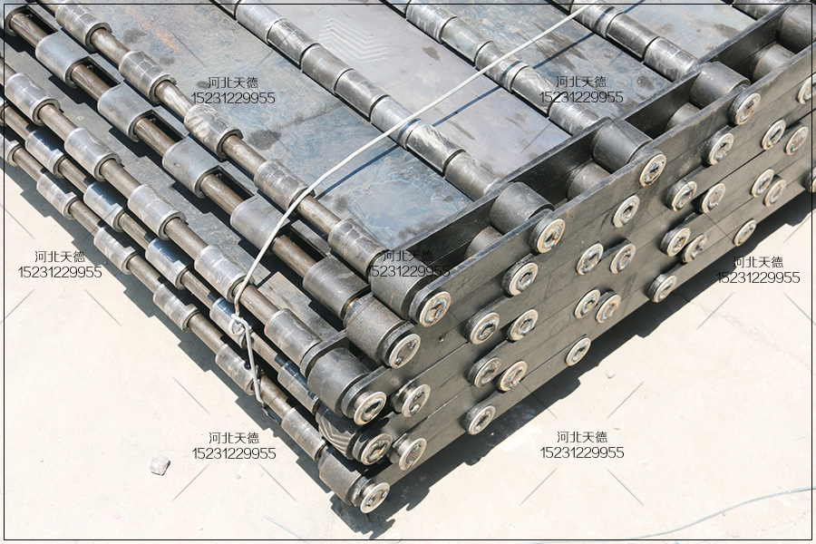 采用10毫米的碳鋼板加工成,節(jié)距采用150毫米的,桿采用15毫米的,鏈條與桿都是碳鋼材質(zhì)的。其載重能力非常的大,成本也很高,