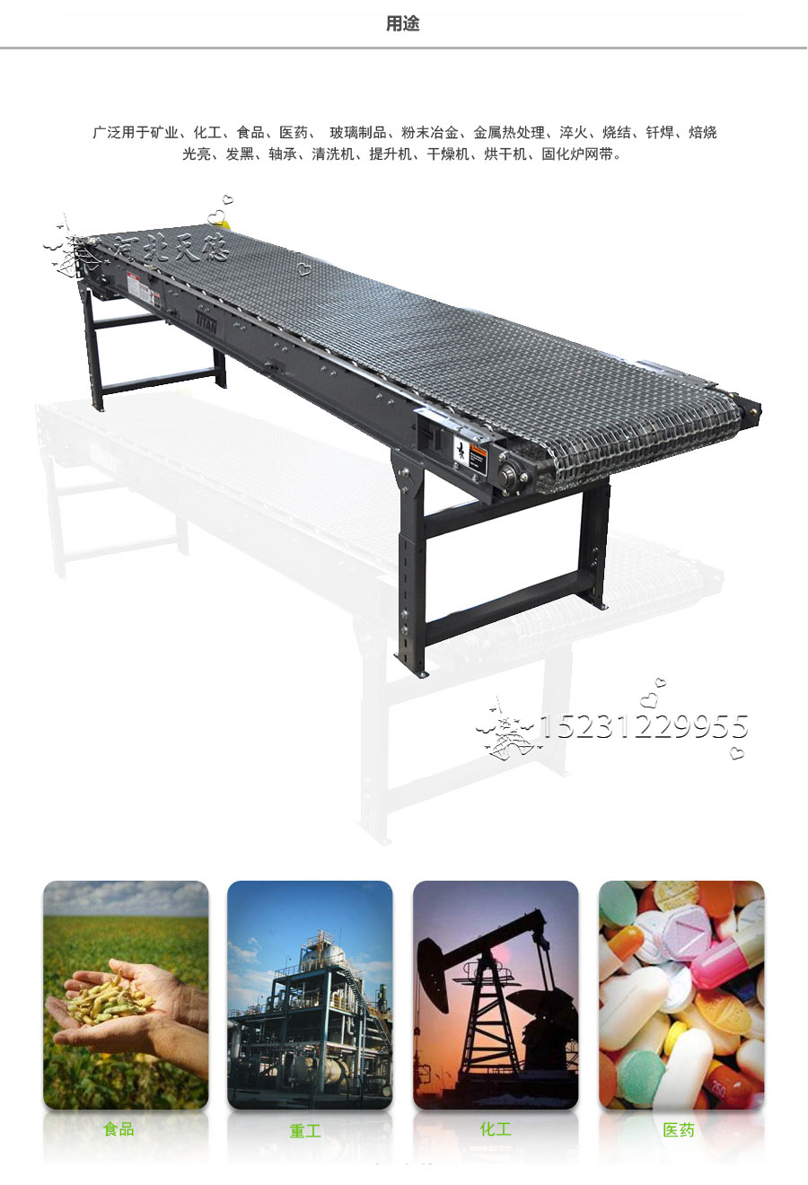 長城網帶應用:做洗滌、干燥、冷 卻、熱處理的輸送線