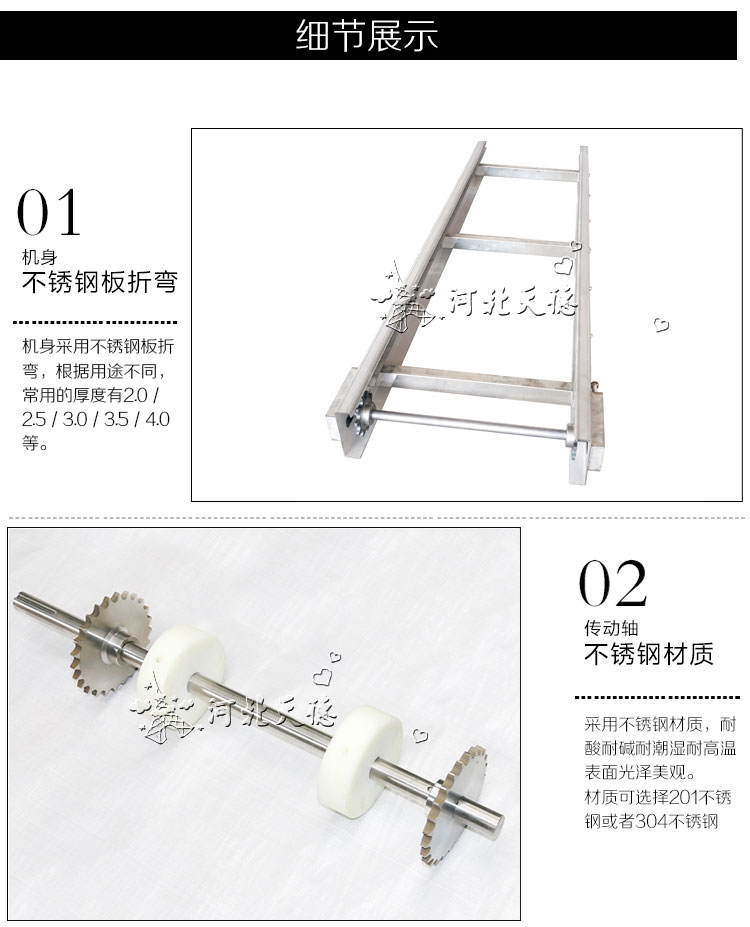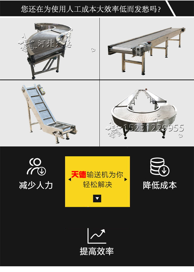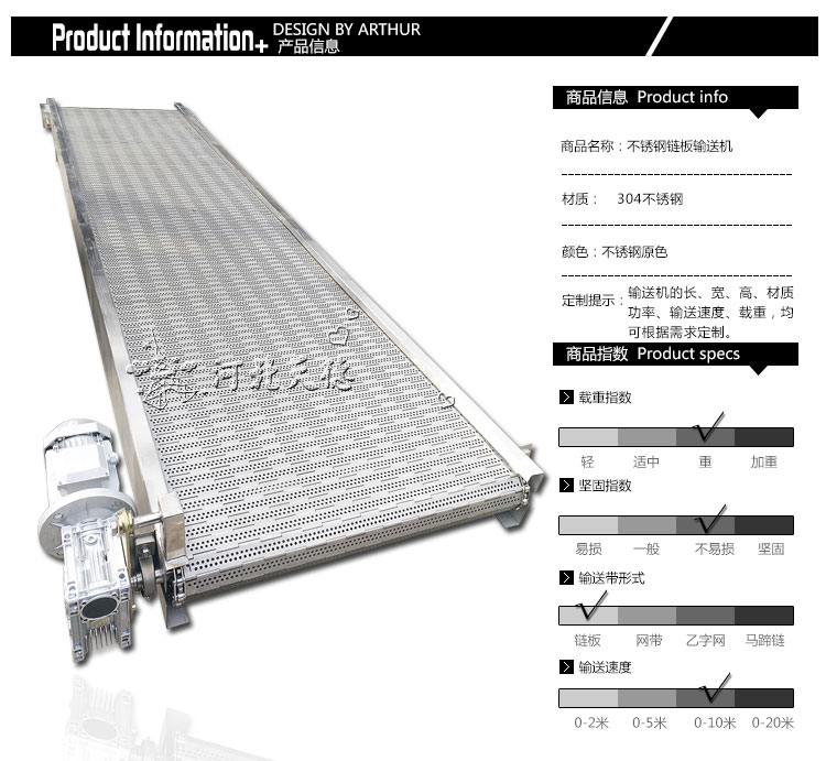 應(yīng)用行業(yè)有:食品加工、速凍加工、設(shè)備組裝、金屬件輸送、機(jī)床排屑,況且在這些行業(yè)中對(duì)鏈板輸送機(jī)的使用型號(hào)也不一樣。平頂鏈板式輸送機(jī)適合高速輕型產(chǎn)品輸送機(jī);折彎鏈板式輸送機(jī)適合重型、體積大產(chǎn)品輸送;合頁(yè)鏈板式輸送機(jī)適合稍重、細(xì)小產(chǎn)品輸送。大家在購(gòu)買時(shí)一定注意要根據(jù)自己產(chǎn)品來(lái)選型。